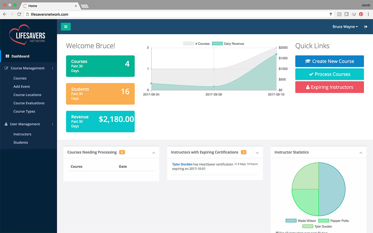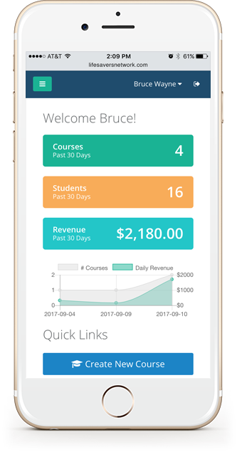 LifeSavers Network is the first and only solution that gives CPR training Centers and Instructors everything they need to manage their business. From setting up a course, to student registration & certifications, all the way through payment processing and accounting. Here’s how we help you manage your CPR Training Business from start to finish, 24 hours a day 7 days a week.