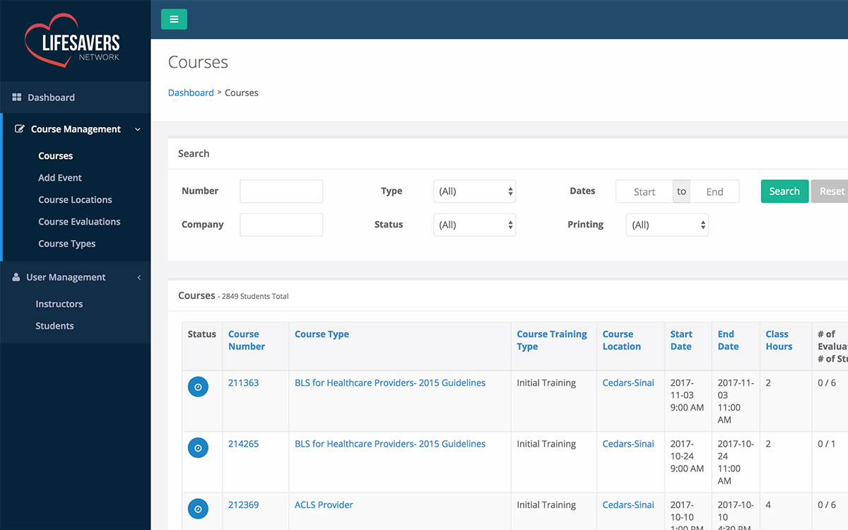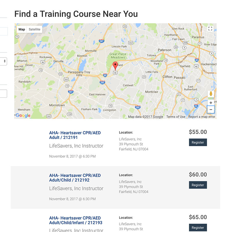 Lifesavers Network for Small Business provides you with a frontend website for students to use to search for courses, register and pay online. The student data is then automatically added to your class roster on the LifeSavers Network, and every student has a profile that is saved in the system.